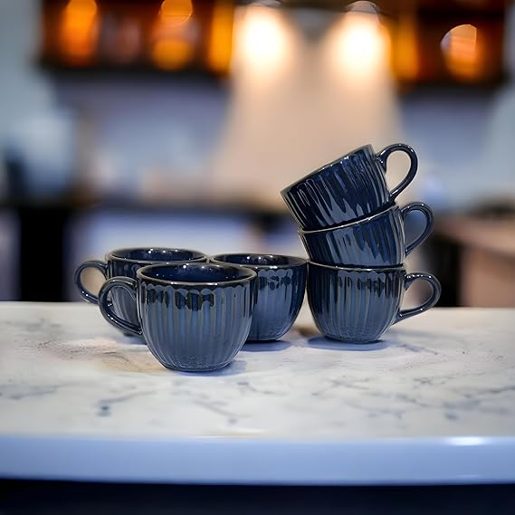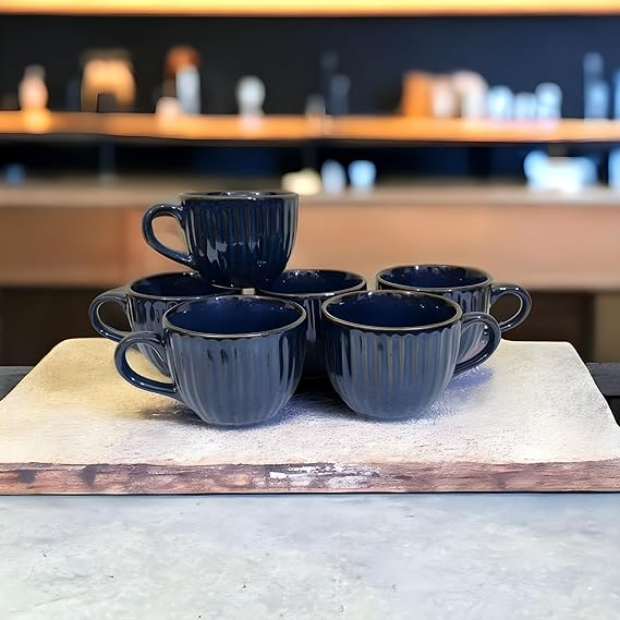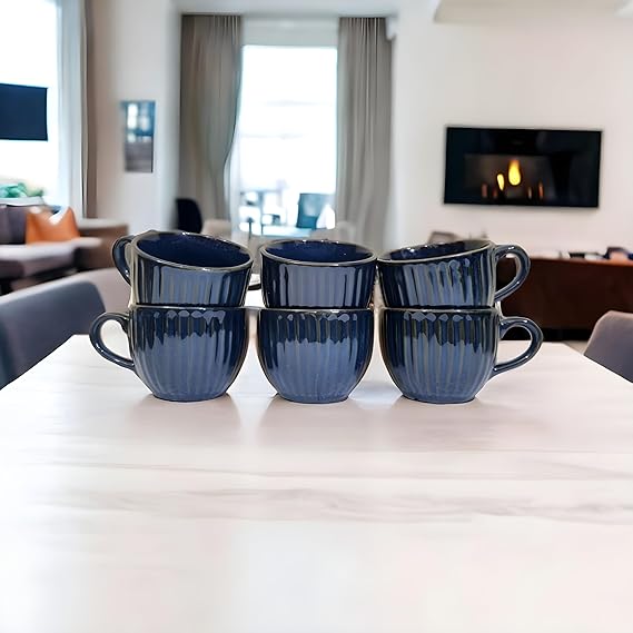 Boncel Blue Ceramic Tea & Coffee Mug Set – Set of 6 (150 ml each)