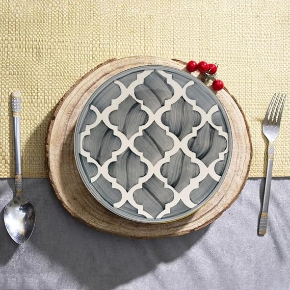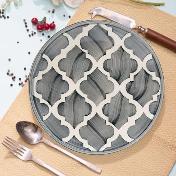 Serve in style with our Moroccan Grey Ceramic Plates – a set of 2 elegant 18 cm quarter plates featuring a hand-glazed finish and a modern Moroccan pattern. Perfect for appetizers, desserts, salads, or everyday dining.