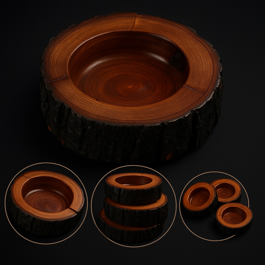 Rustic Wooden Tree Bark Ashtray – Handcrafted from Natural Wood