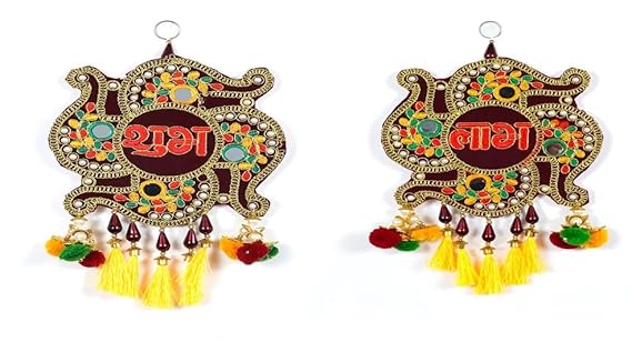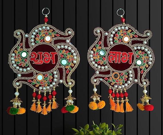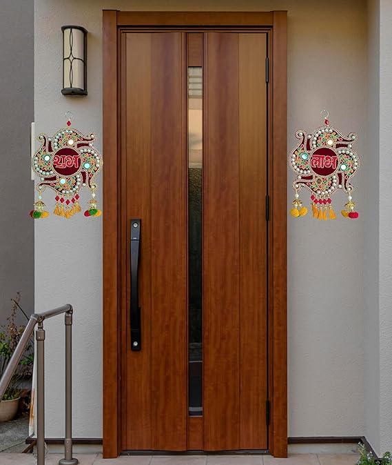 Shubh Labh Swastik Wall Hanging Set – Traditional Door Décor (Set of 2)