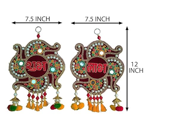 Invite blessings, positivity, and prosperity into your home with this beautifully crafted Shubh Labh Swastik Wall Hanging Set. Adorned with intricate mirror work, pearls, beads, and colorful pom-poms, this set is perfect for your main door or pooja space.