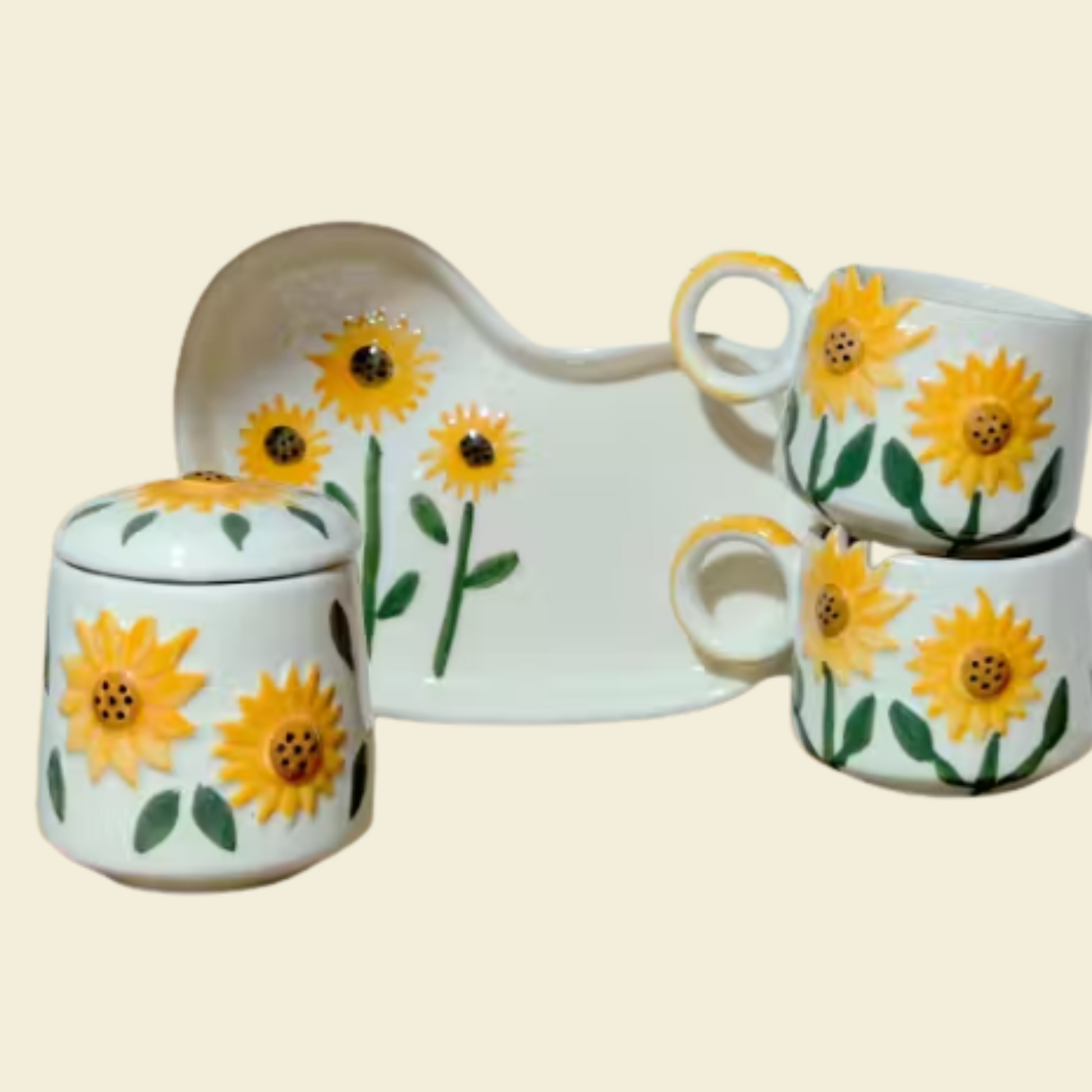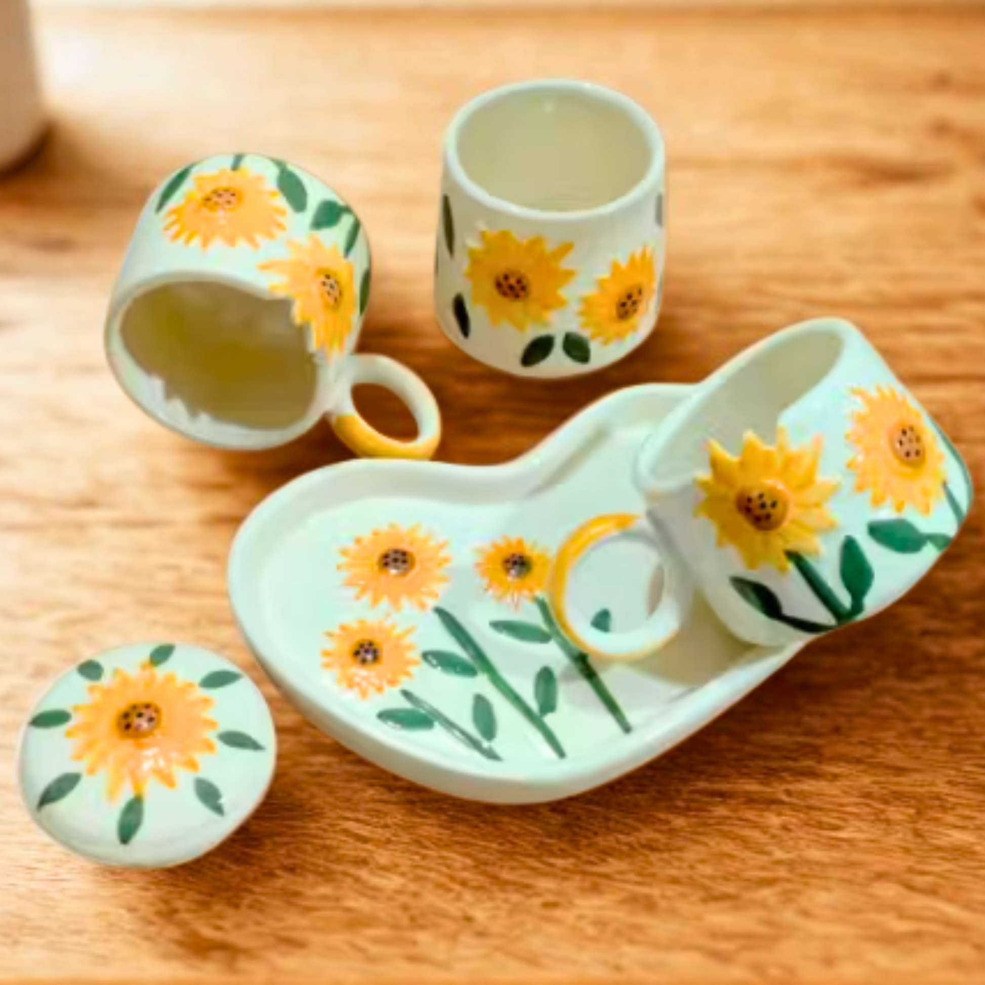 Sunflower Bloom Ceramic Breakfast Set – Cup, Tray & Container