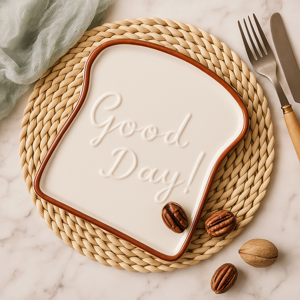 Toast-Shaped Ceramic Plate – “Good Day!”
