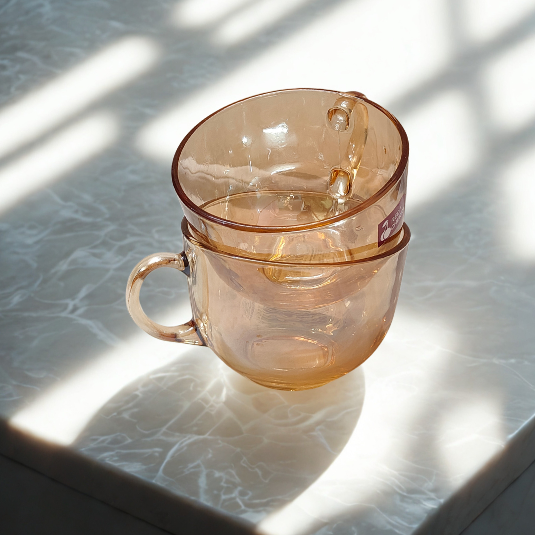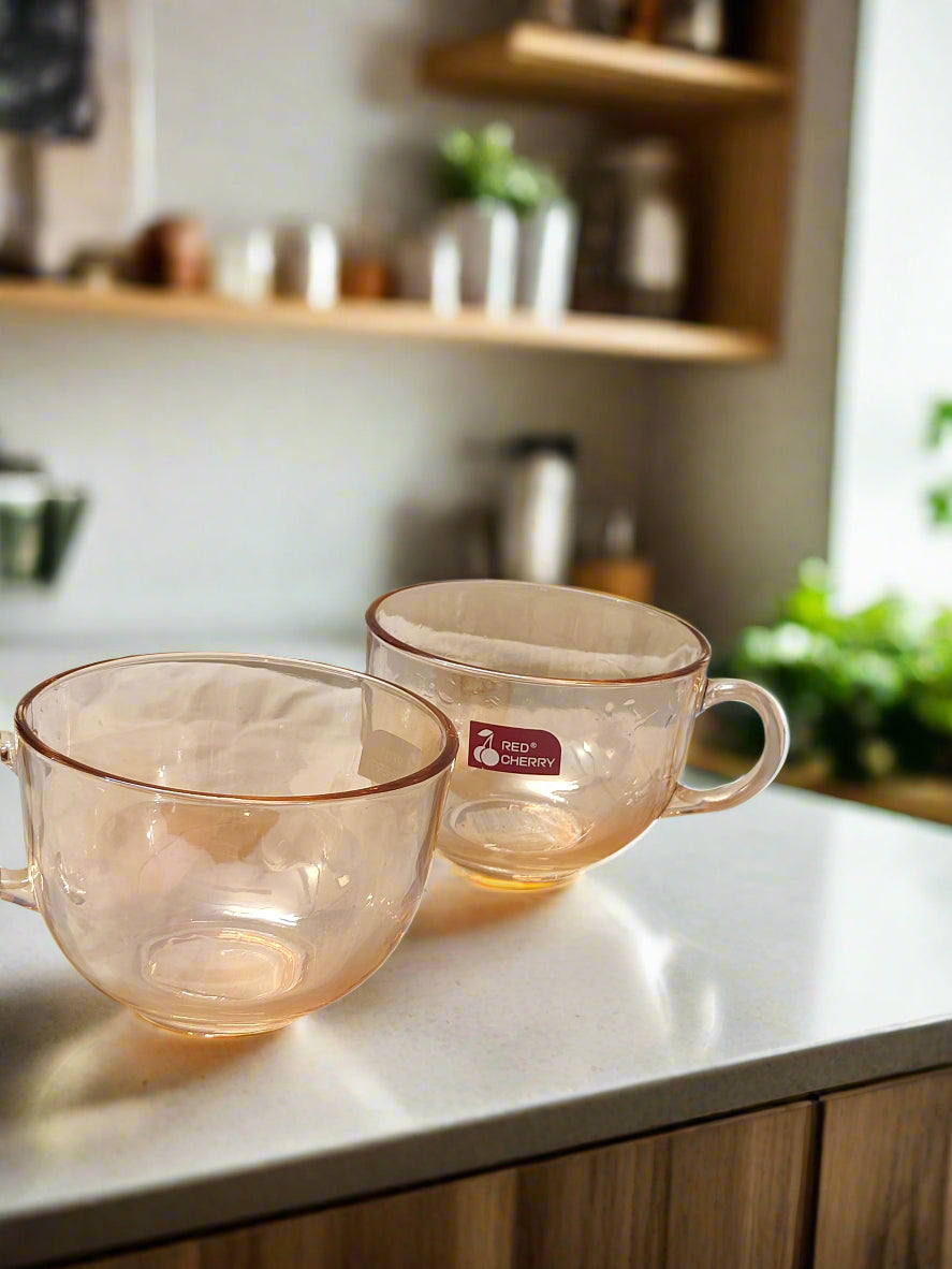 Sip in style with this elegant set of 2 transparent coffee mugs, designed with a subtle rose-gold tint. Lightweight yet sturdy, these mugs are perfect for hot coffee, herbal teas, and even cold brews. Their minimal design makes them a chic addition to your morning routine or hosting essentials.